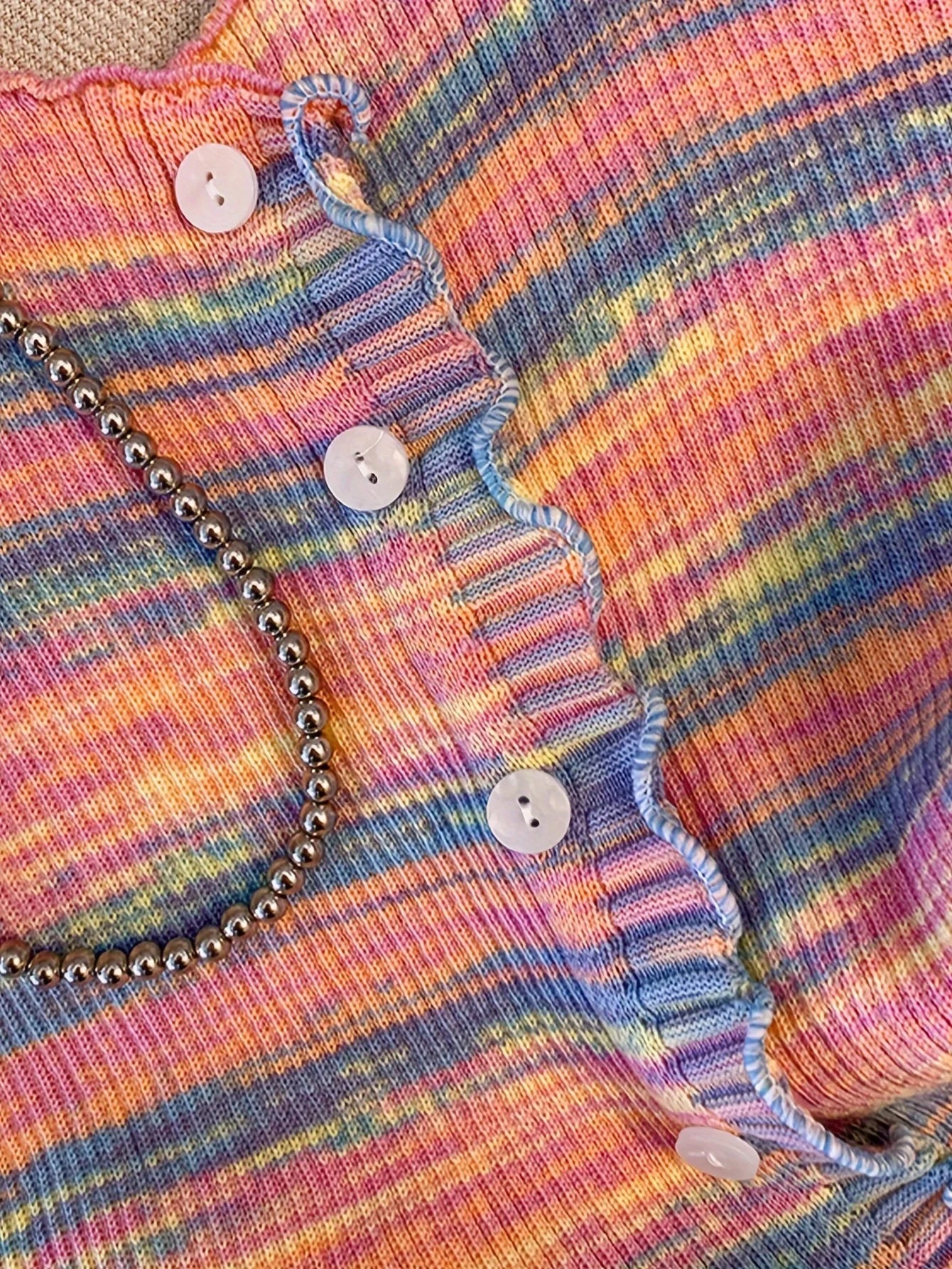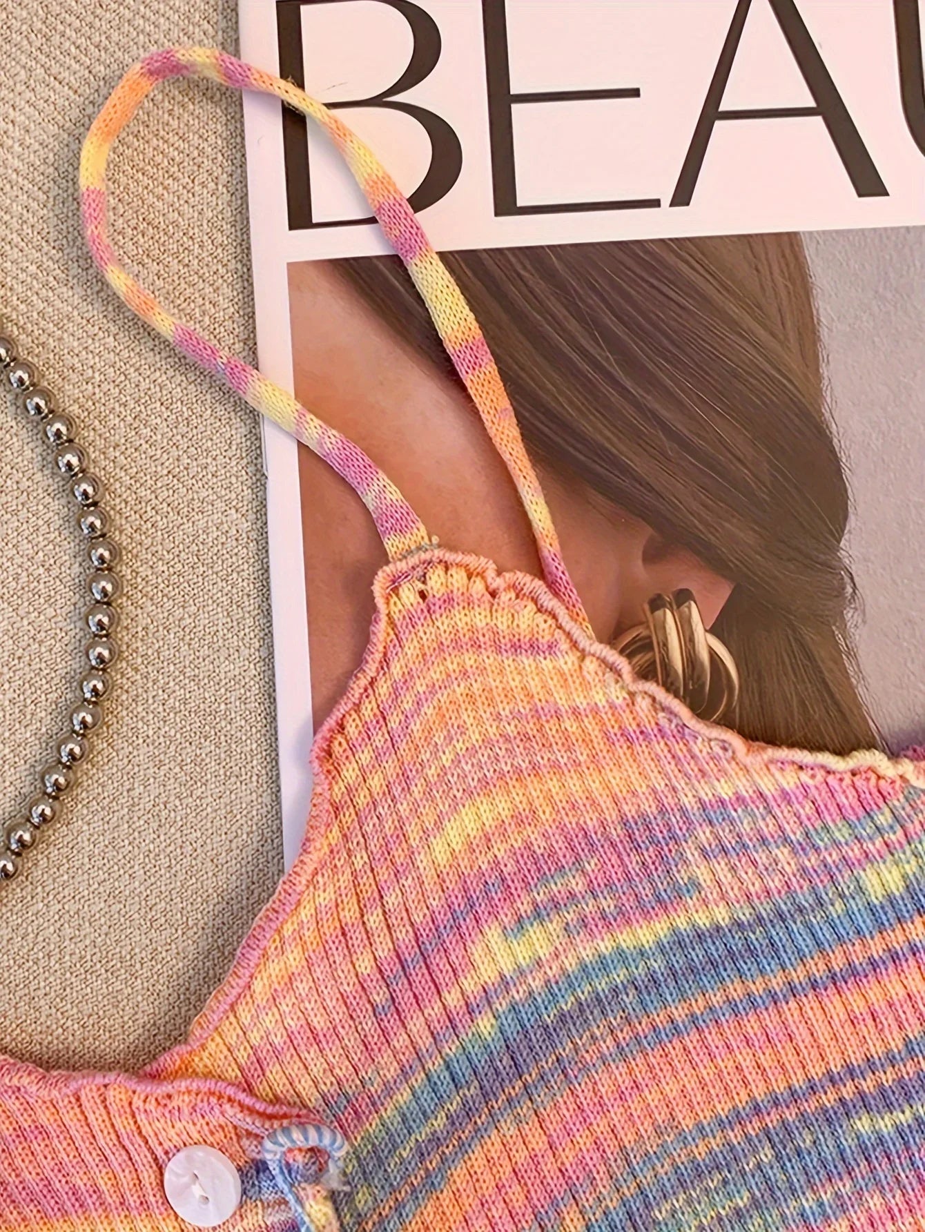 Abebey Women's Super-Short Tie-Dye Knitted Top - Casual Summer Wear