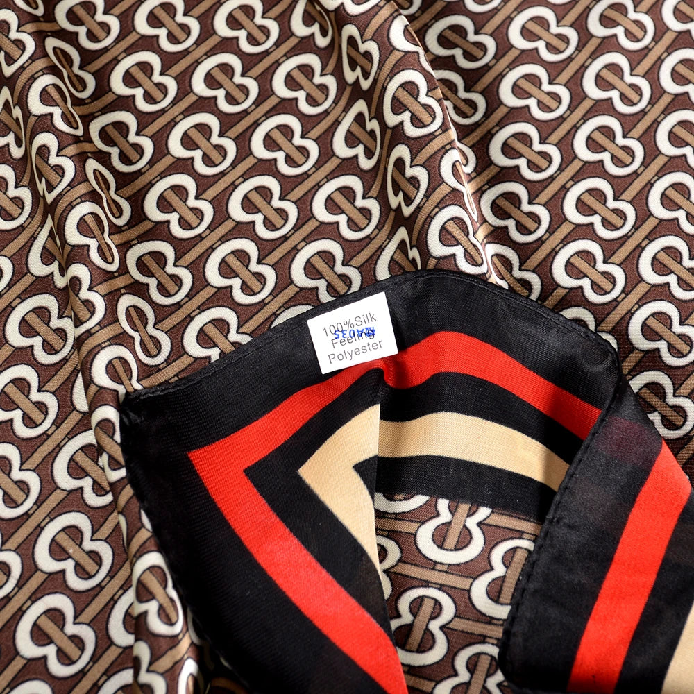 Add a touch of elegance and style to your outfit with the BYSIFA Multifunctional Fashion Scarf. Crafted from soft satin polyester, this striped square scarf is a versatile accessory perfect for women and girls. With a length of 70x70cm, it can be styled in multiple ways as both a scarf and a shawl. Whether you are looking for a chic way to accessorise a casual outfit or need something to keep you warm during colder seasons, this scarf is ideal for all four seasons. The coffee black color and elegant pattern make it a stylish addition to your wardrobe, while the lightweight satin material provides a luxurious feel.