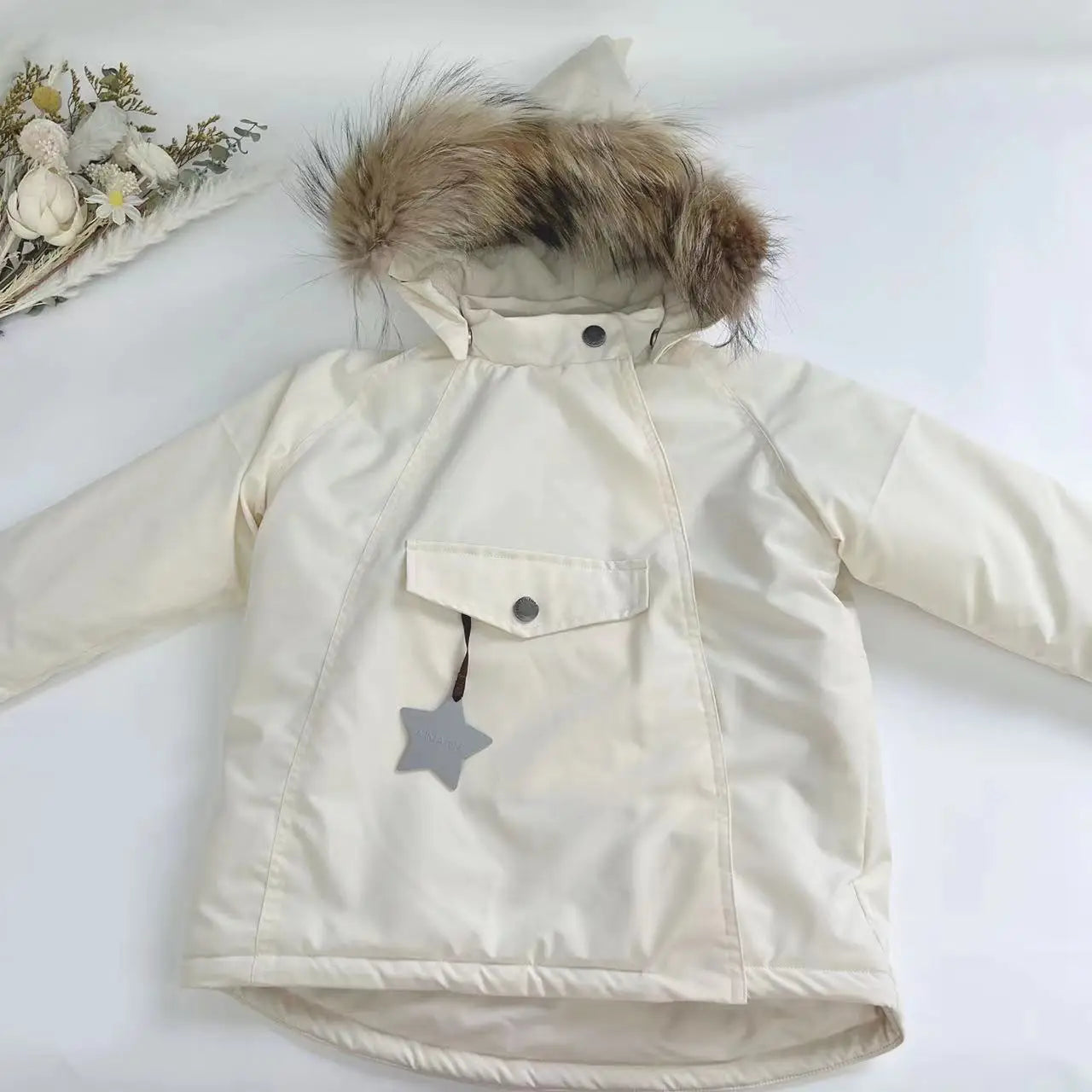 This winter parka offers excellent value for money, providing both high-quality materials and a stylish design at a budget-friendly price. The combination of a durable cotton filling, down content, and fun star design makes this an ideal winter coat without breaking the bank. Perfect for parents looking to keep their kids warm, comfortable, and fashionable throughout the winter season. Get the Rainbow Angel Winter Hooded Parka today and enjoy great quality at an affordable price!