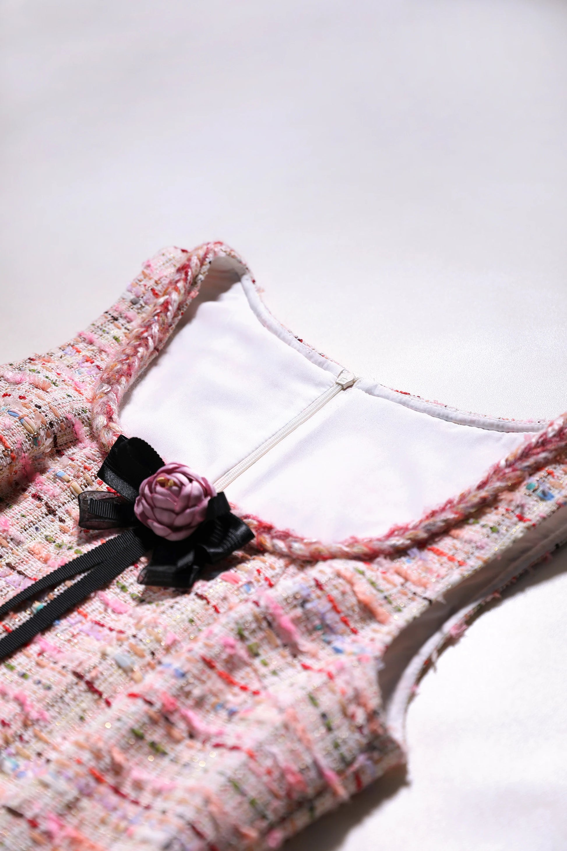 Crafted from premium synthetic fibers like acrylic and polyester, this dress ensures both durability and comfort. The fine dobby fabric provides a soft texture, while the intricate decorations, including bright silk and chain details, add sophistication. The puff sleeves and A-line shape offer a flattering silhouette, and the attention to detail in the patchwork and asymmetrical design highlights Dabuwawa's commitment to high-quality craftsmanship.