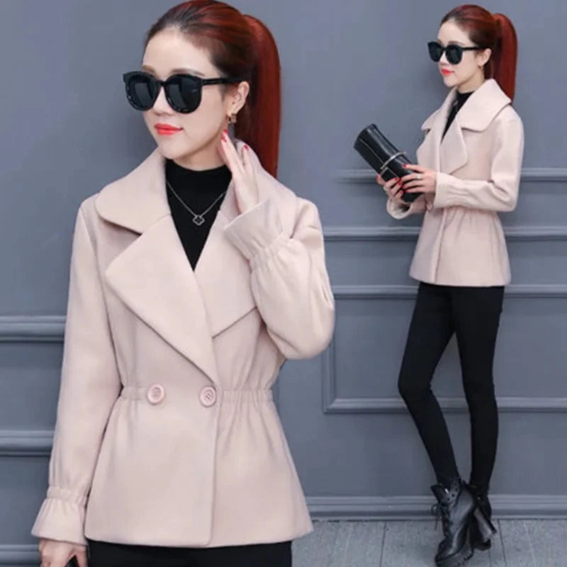 XLMJDZGS Women's Slim Fit Woolen Coat – Casual Autumn & Winter Outerwear with Turn-Down Collar