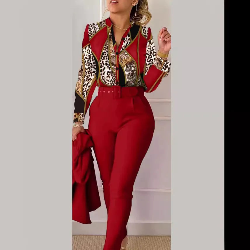 Fashion Printed Long Sleeved Women Suit Autumn and Winter Slim Fit Elegant Female Office 2 Piece Set