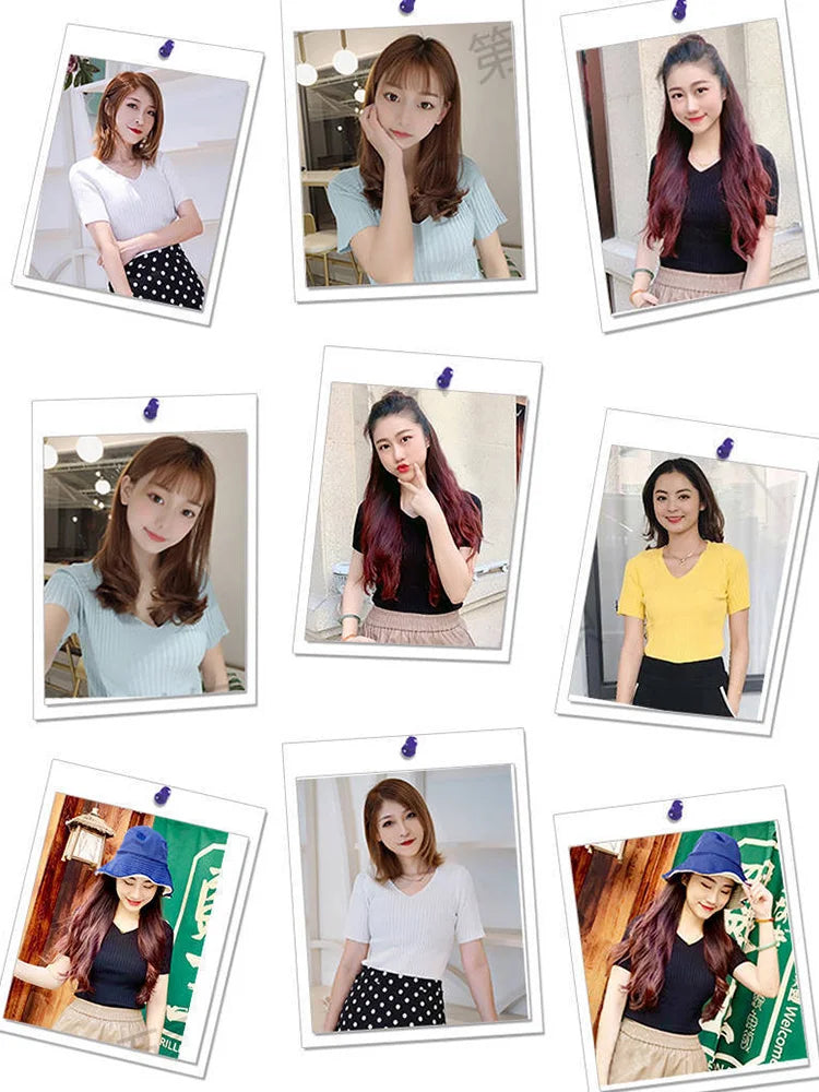 Crafted from a high-quality polyester blend, this T-shirt is both lightweight and durable, making it a great choice for the warmer seasons. The slight stretch in the fabric ensures comfort throughout the day, while the solid color and simple design make it easy to style. The V-neck collar adds an extra touch of elegance, making this T-shirt perfect for a variety of occasions.