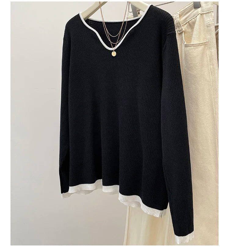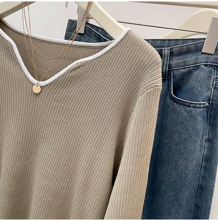 BigLargi Women's Loose Fit V-Neck Casual Shirt – Autumn/Winter Collection