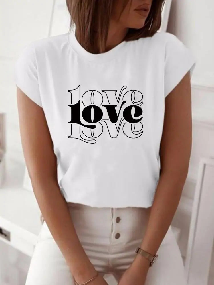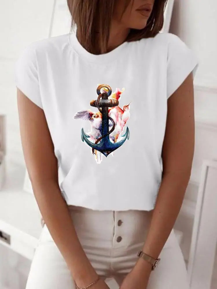 NoEnName_Null Women’s Cartoon Print Casual T-Shirt – Short Sleeve O-Neck Summer Top