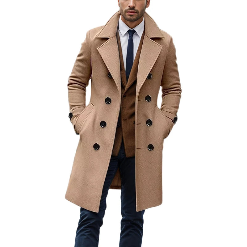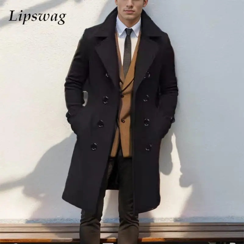 Winter Wool Overcoats Mens Outdoor Casual Double-breasted Turndown Collar Coats.
