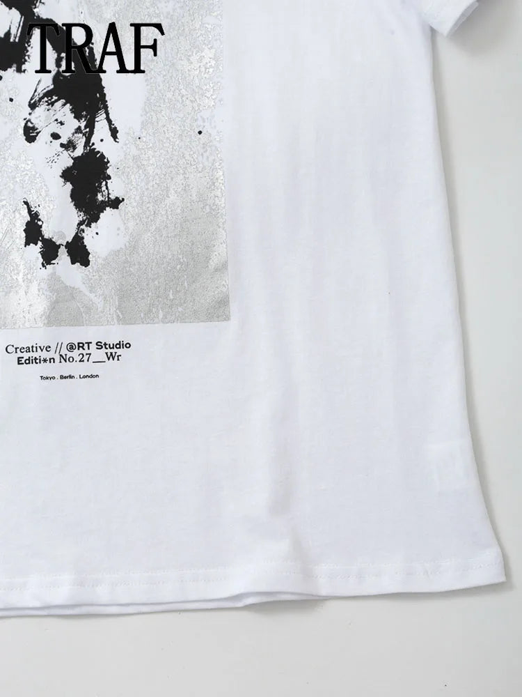 Women Printed T-shirts Summer 2024 Women Cotton O-neck Short Sleeve Tops Female New in Tops