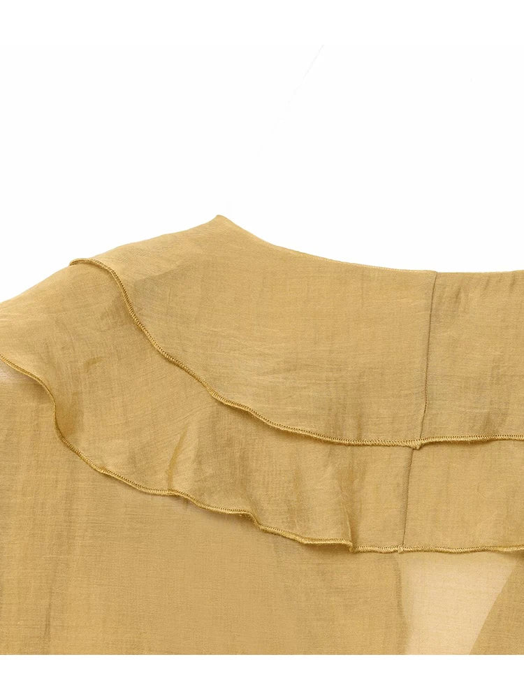 Add timeless elegance to your wardrobe with the Kumsvag V-Neck Ruffle Shirt designed for middle-aged women seeking refined vintage-inspired style