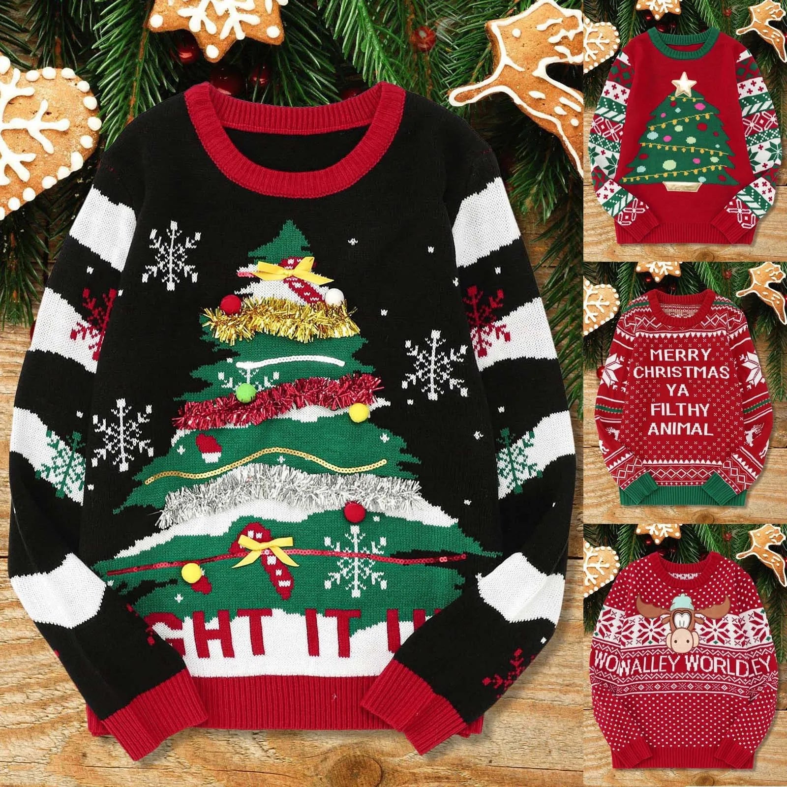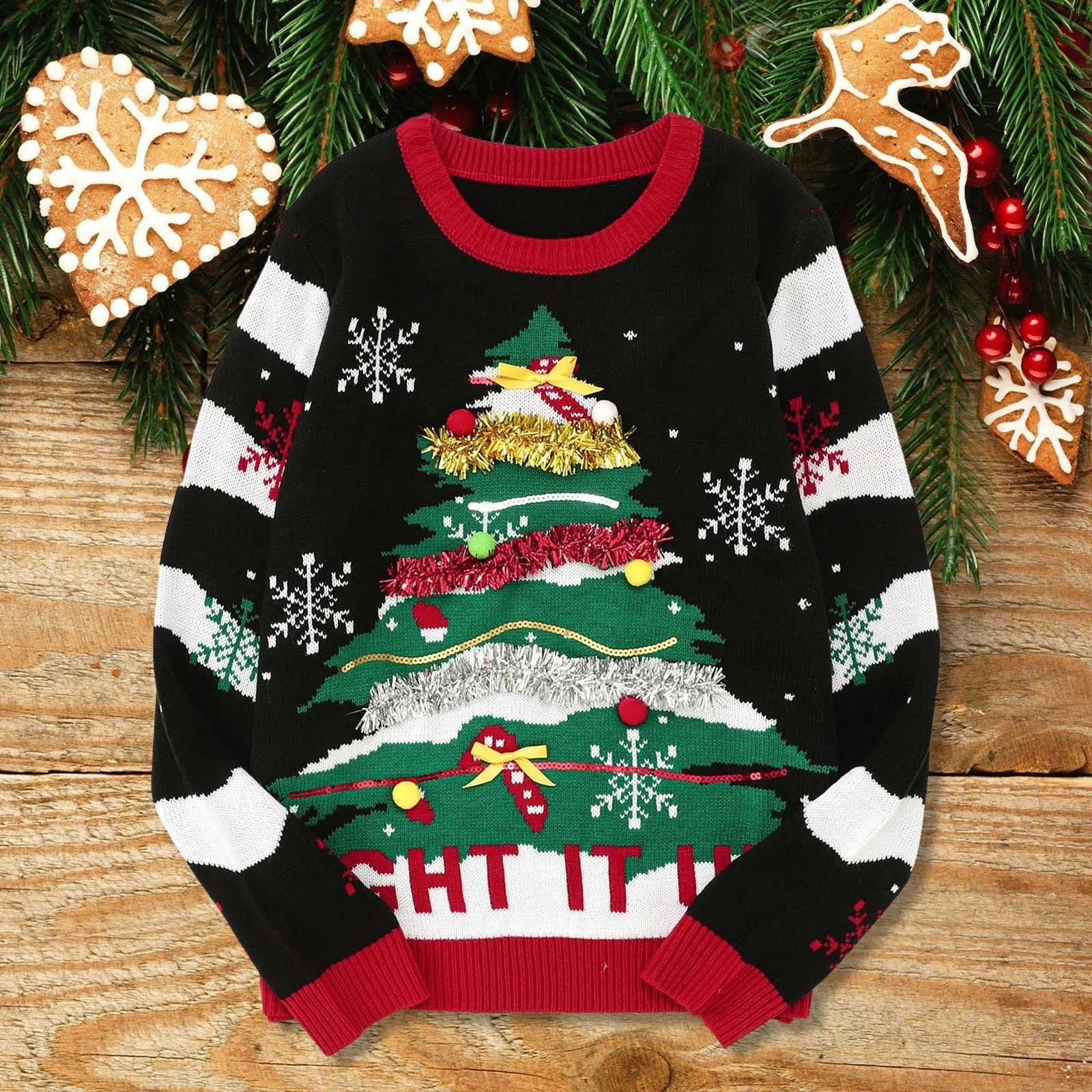 Women's Autumn and Winter New Christmas Casual Round Neck Embroidered Jumper.