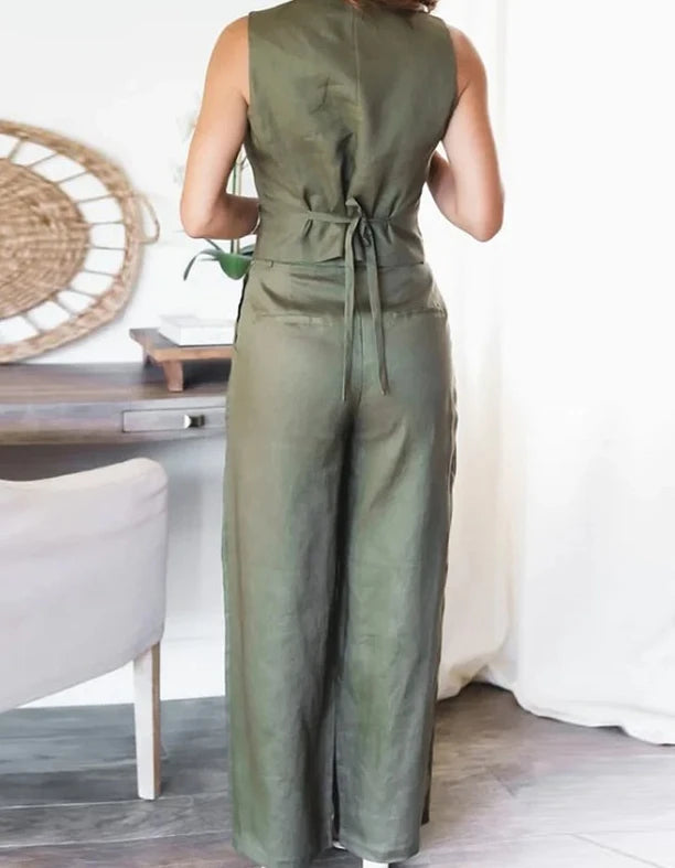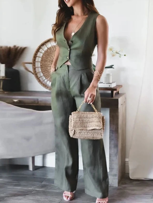 Women's Fashion Solid Vest Tops & Casual Pants Set Temperament Commuting Lace Up Elegant Two Piece Suit Outfits for Women