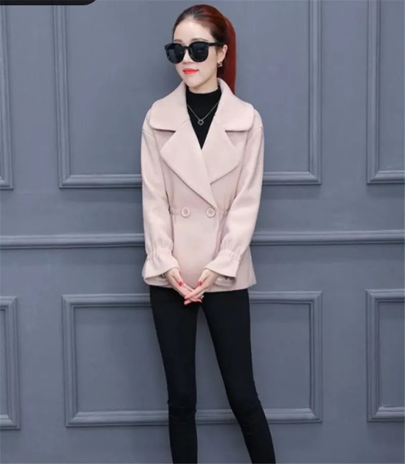 XLMJDZGS Women's Slim Fit Woolen Coat – Casual Autumn & Winter Outerwear with Turn-Down Collar