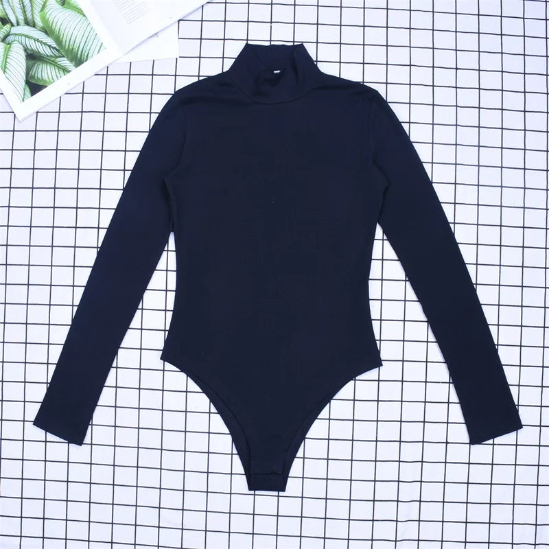 ZSIIBO Women's Streetwear Solid Full Sleeve Skinny Bodysuit – Autumn/Winter
