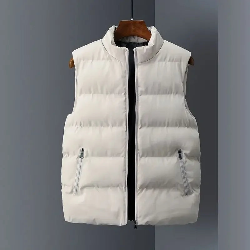 Stay cozy and stylish throughout the colder months with the 2023 Autumn/Winter Men’s Solid Colour Sleeveless Vest. Crafted from a durable cotton-polyester blend with feather filling, this vest provides excellent insulation and comfort for the autumn and winter seasons. Designed for smart casual wear, it features a sleek zipper closure, functional pockets, and a loose fit, making it perfect for layering over your favourite shirts or sweaters. Whether you are headed out for a casual outing, running errands, or simply need an extra layer of warmth, this vest offers practicality, comfort, and style all in one.