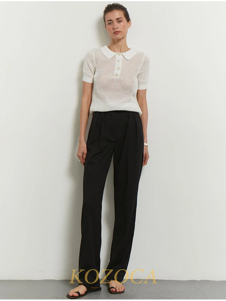 KOZOCA Women's Hollow-Out Knit T-shirt – Casual Solid Spring/Summer Top