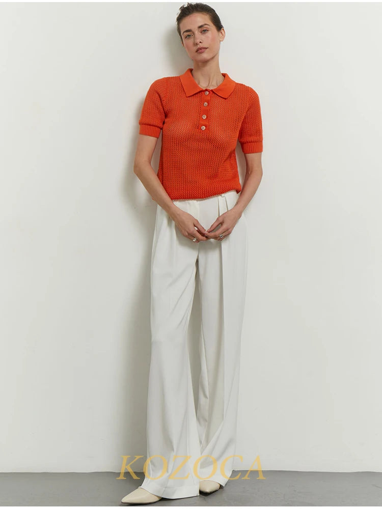 KOZOCA's hollow-out knit T-shirt is crafted with a high-quality polyester and spandex blend, offering both durability and softness. The slight stretch ensures a comfortable and flattering fit, while the knit fabric is breathable and lightweight, making it perfect for the warmer months. The hollow-out decoration not only enhances the style but also provides added ventilation for a cool and comfortable wear.
