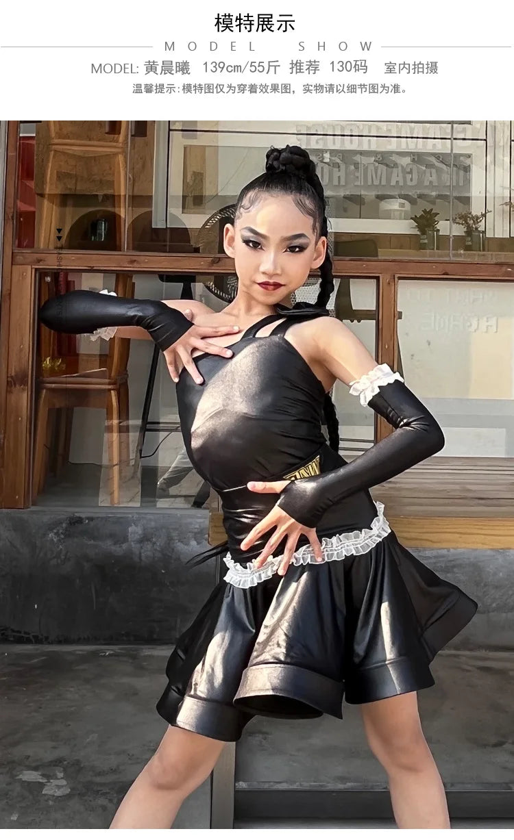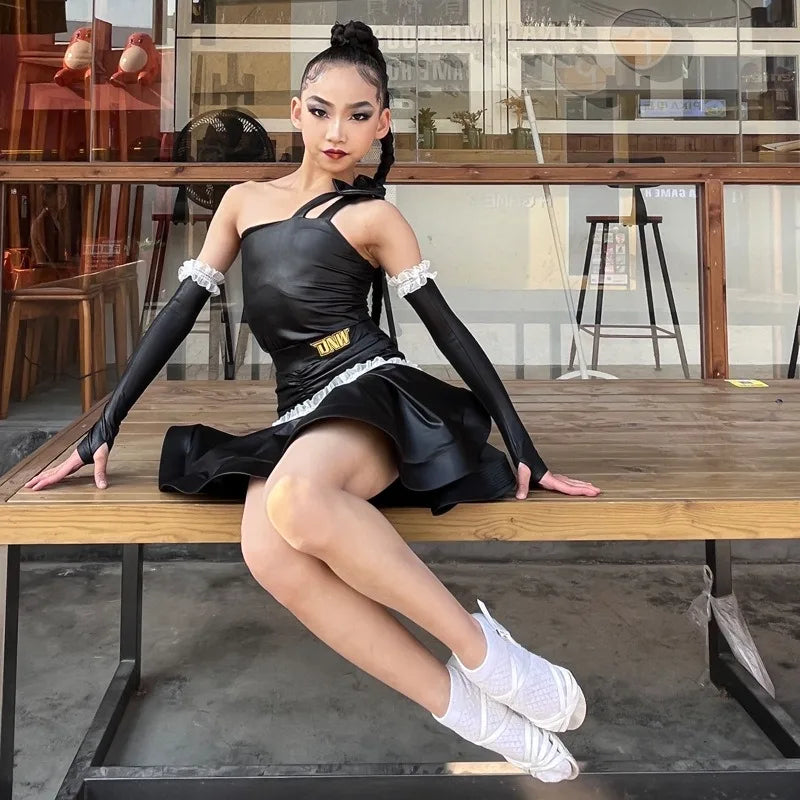 Girls' Latin Dance Dress – Lightweight Polyester Performance Wear for Practice & Competition