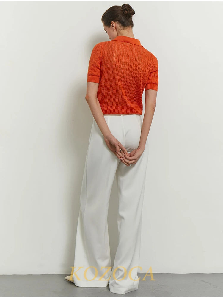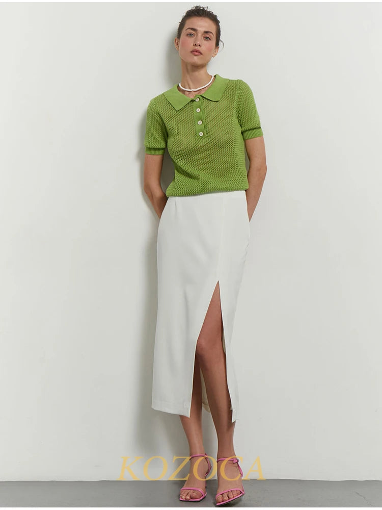 KOZOCA Women's Hollow-Out Knit T-shirt – Casual Solid Spring/Summer Top