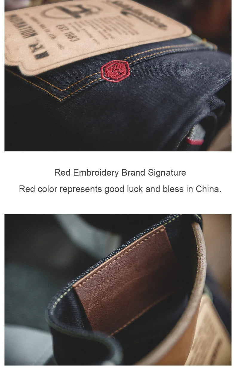 MADEN Men’s Safari Style Slim Fit Straight-Leg Denim Jeans - Embroidered, Vintage-Inspired with Raw Denim Finish