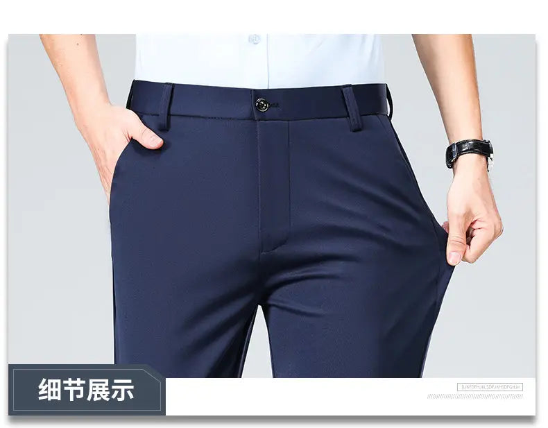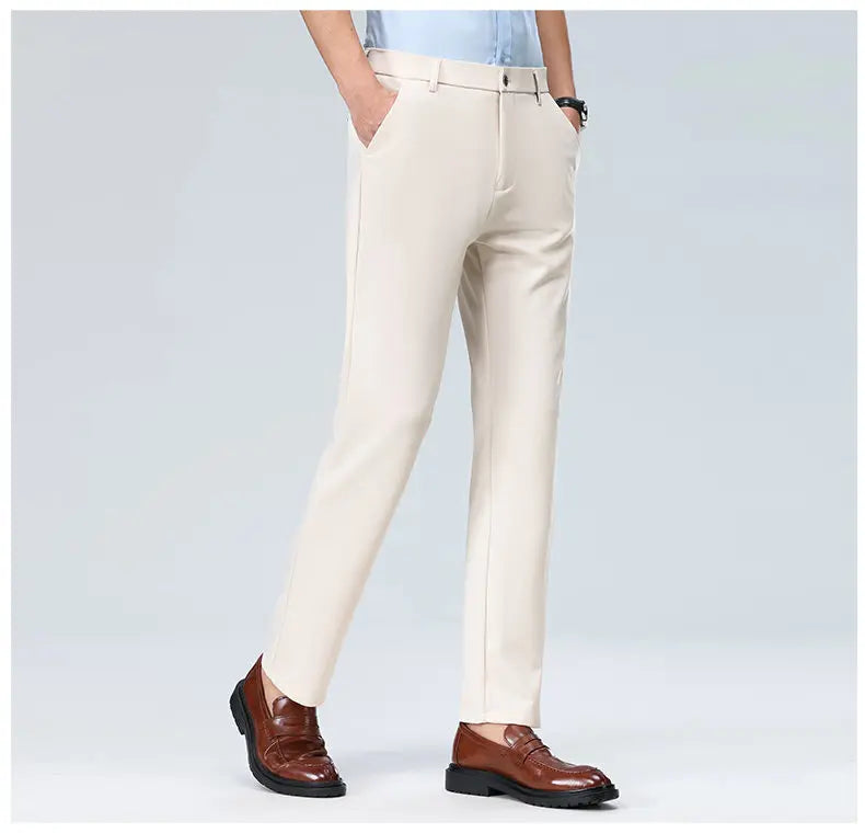 Elevate your wardrobe with the QUHNBGY Men’s Smart Casual Straight-Leg Pants. Designed for both comfort and style, these full-length trousers are made from high-quality polyester fabric and feature a midweight construction, perfect for the spring and autumn seasons. The mid-rise waist and loose fit offer all-day comfort, while the zipper fly ensures a secure and easy fit. With practical pockets for added convenience and a flat front style, these pants are ideal for office wear or casual outings. Whether you're in the office or enjoying a weekend outing, these versatile pants provide the perfect balance of smart and casual.