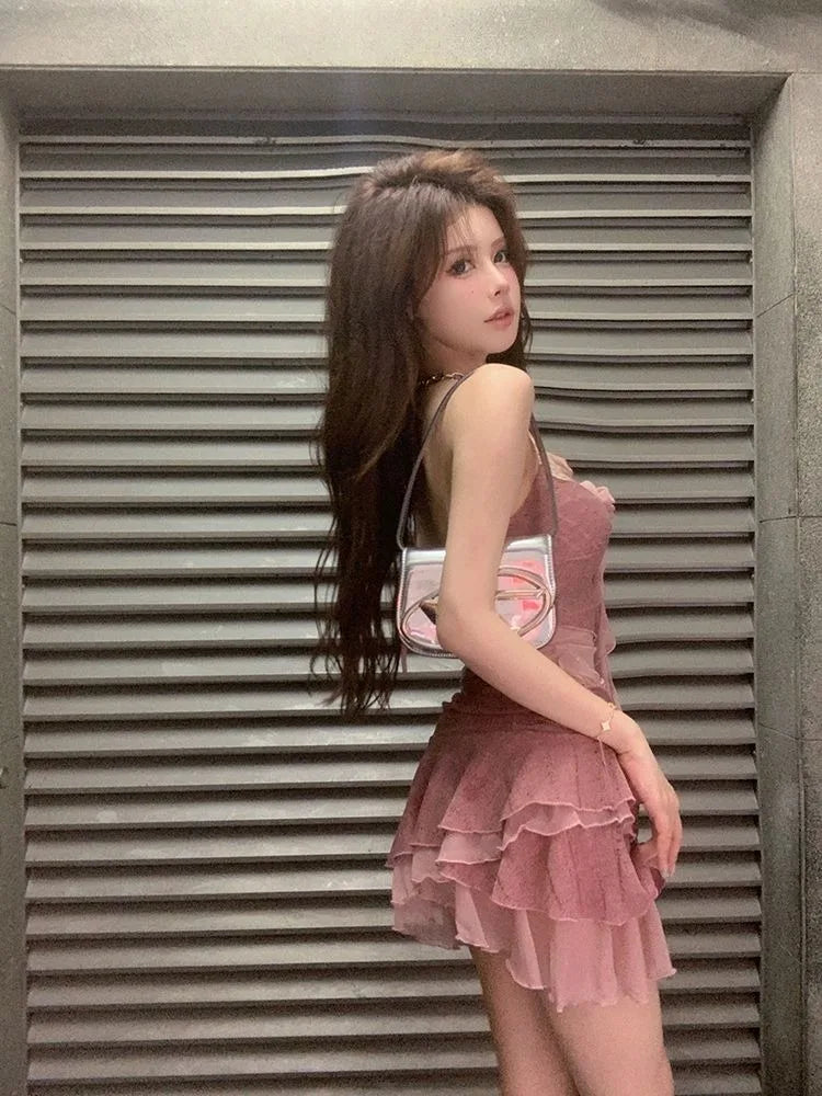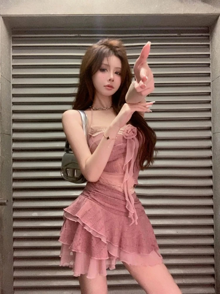 This dress features a flirty A-line silhouette that complements the figure, a stylish V-neck collar, and decorative ruffles that add movement and charm. The single-breasted closure offers a classic front detail, while the short length keeps the look fresh and youthful. The sleeveless cut enhances breathability, making it ideal for warm weather.