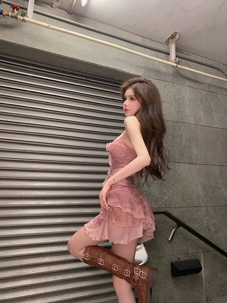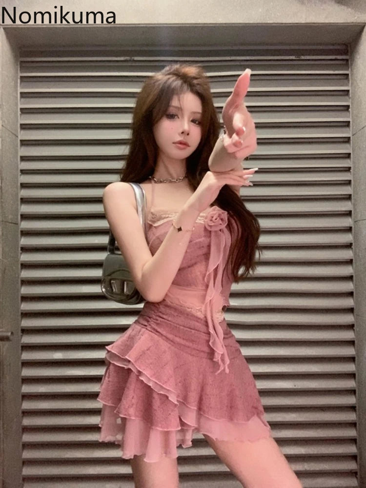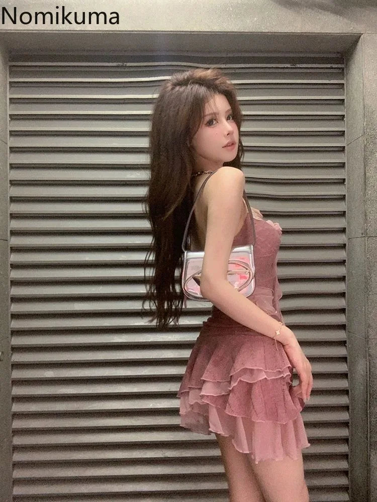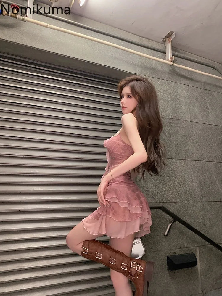 Nomikuma Women's Sexy Ruffled A-Line Mini Dress – Sleeveless V-Neck Summer Style