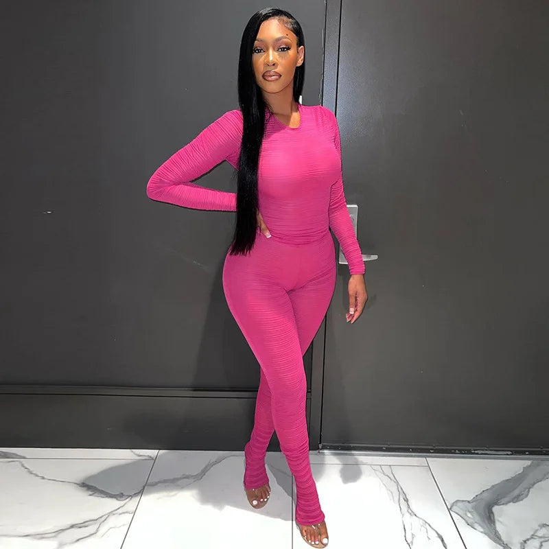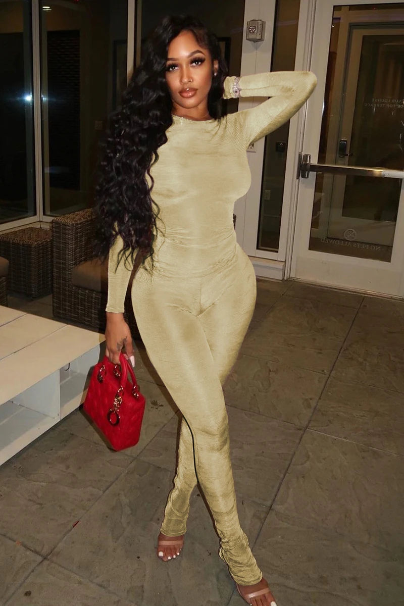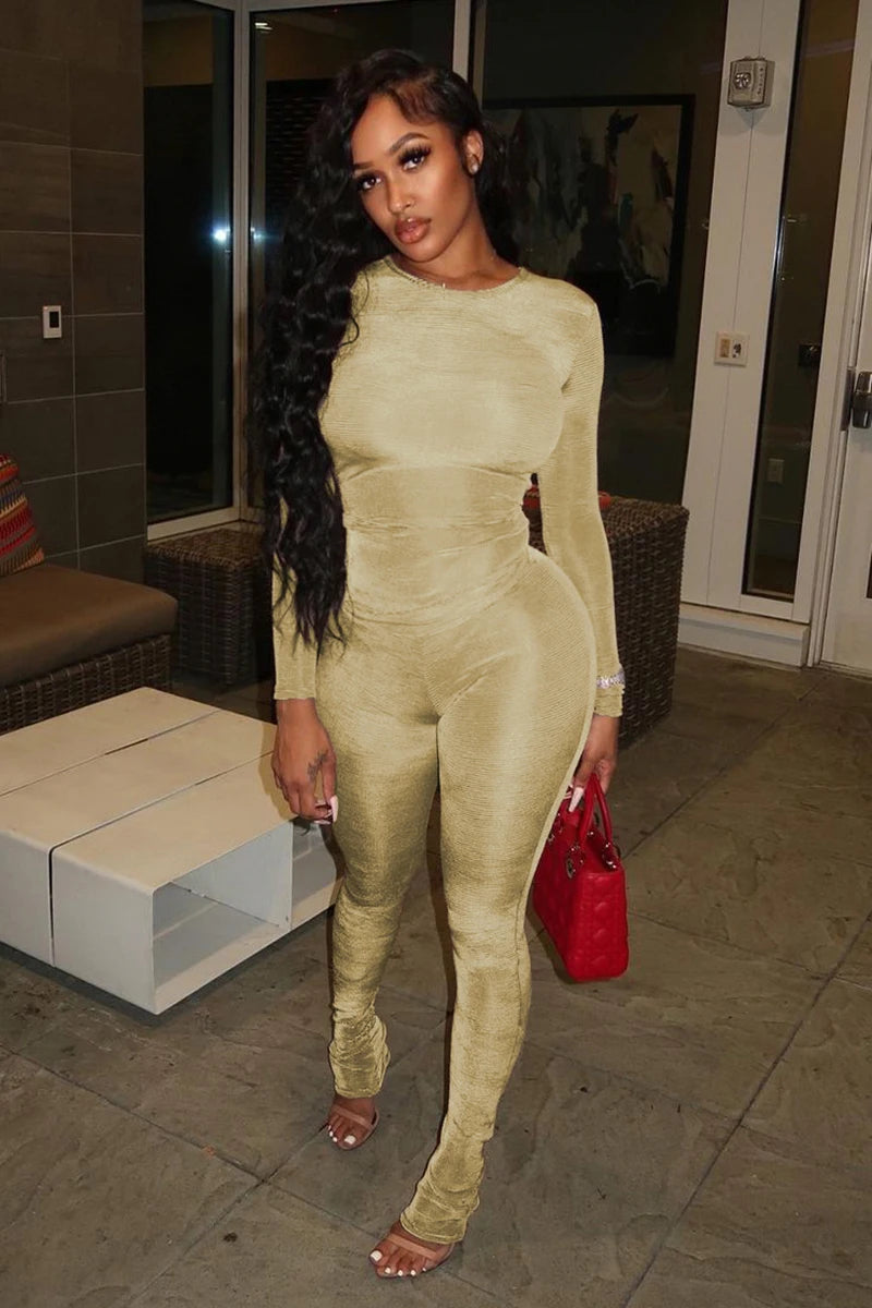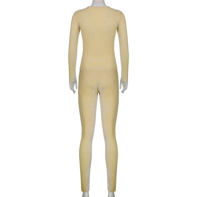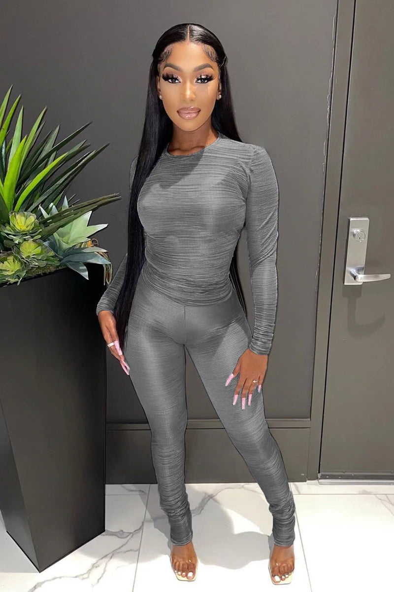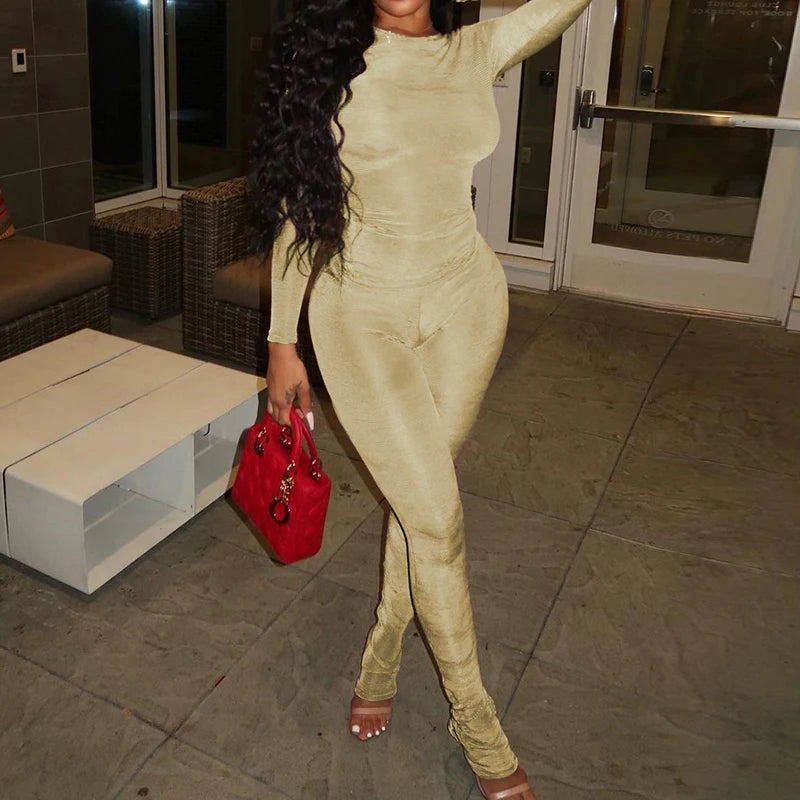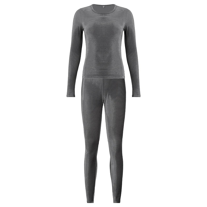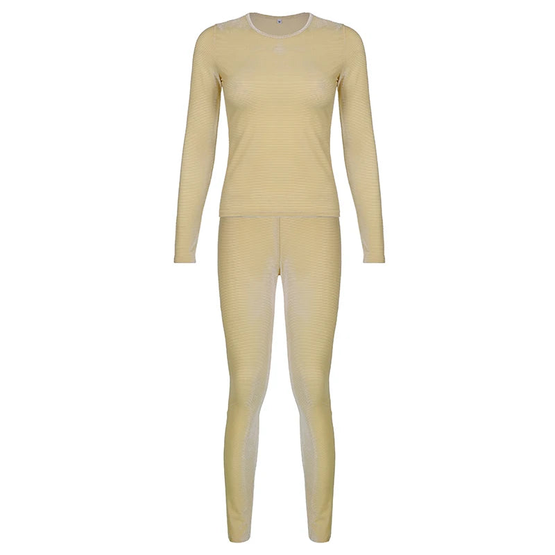 Two Piece Sets Women Autumn Solid Pencil Pant Skinny Casual Pullover Tops & Elastic Leggings All-match Clothes