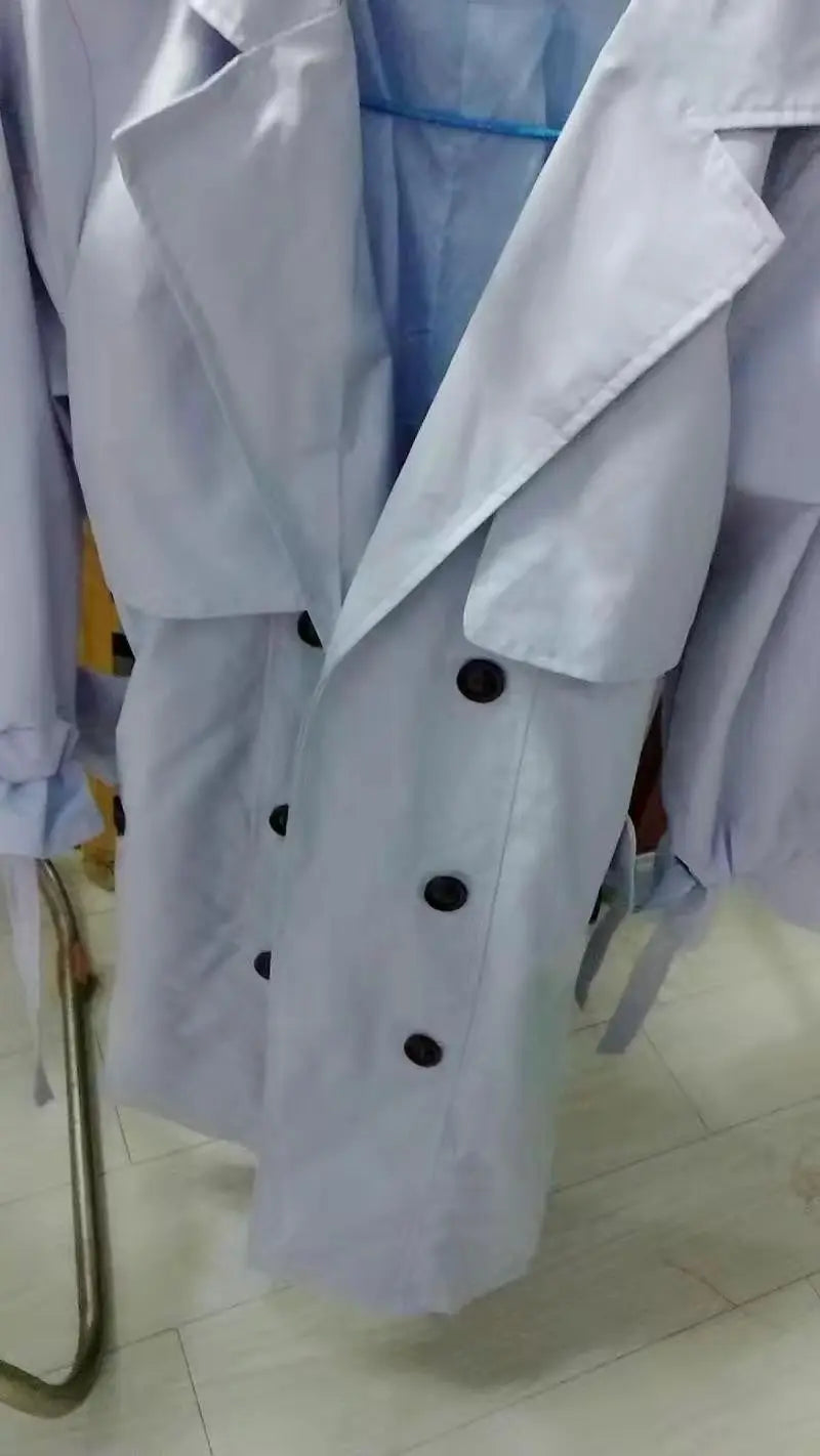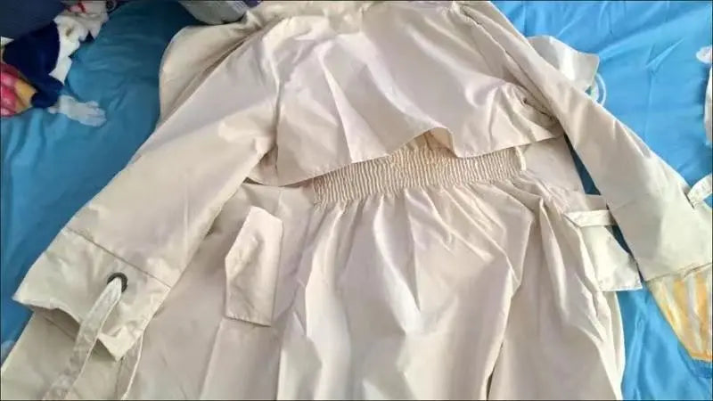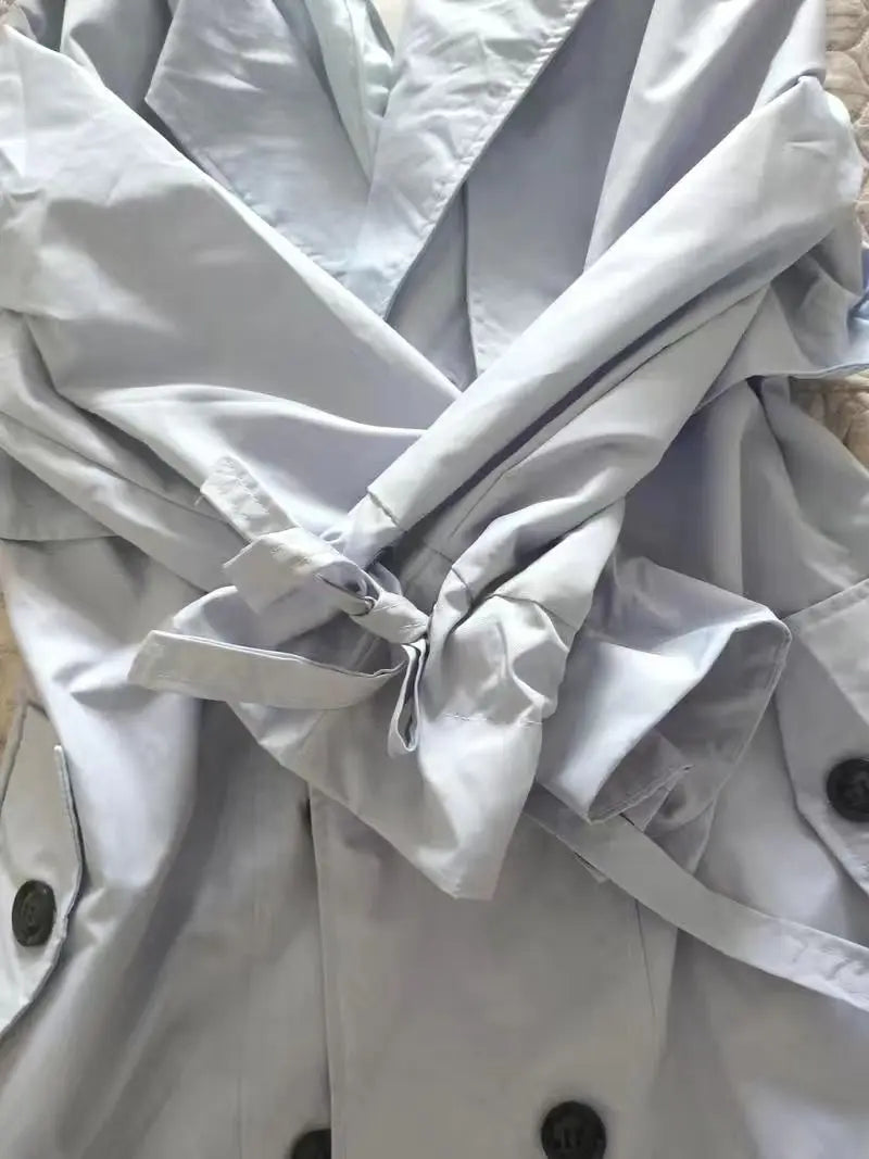 This trench coat is crafted with a high-quality cotton-polyester blend that ensures both durability and comfort. The TAT weaving technique guarantees a strong and long-lasting structure, while the solid pattern and well-detailed decorations add to its stylish appeal. The coat's slim fit design flatters the body while providing warmth and coverage, making it an excellent choice for colder months. Its attention to detail, from the button embellishments to the spliced and ruched accents, ensures this coat stands out as a sophisticated, high-quality piece.