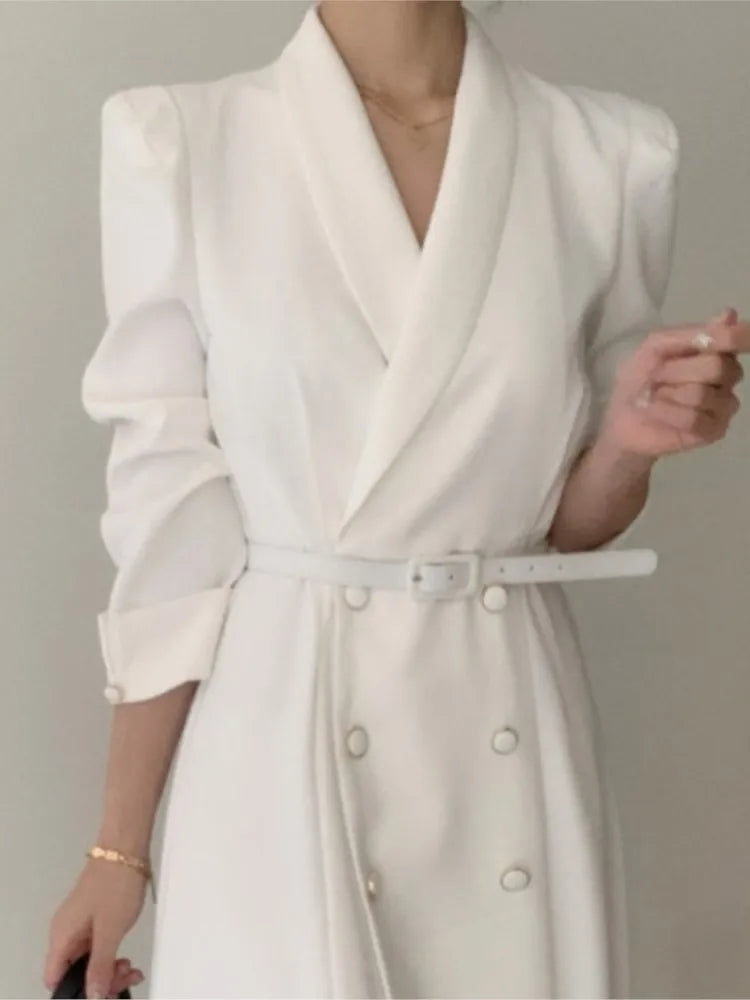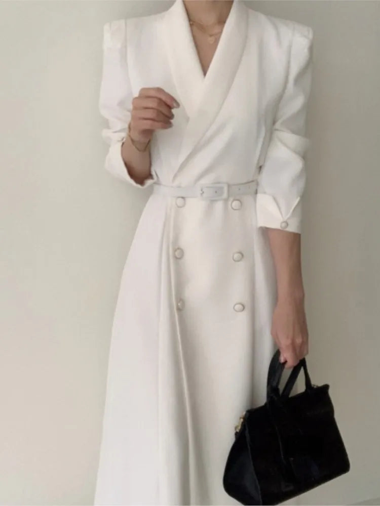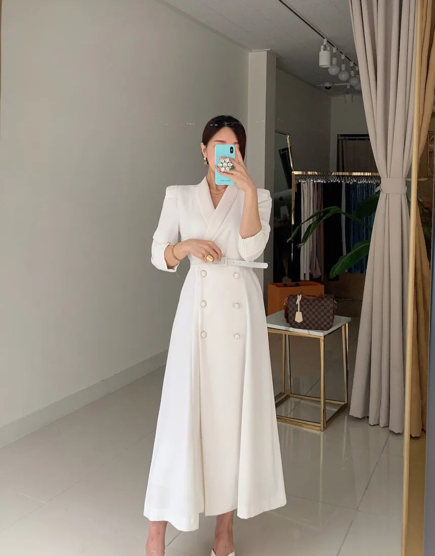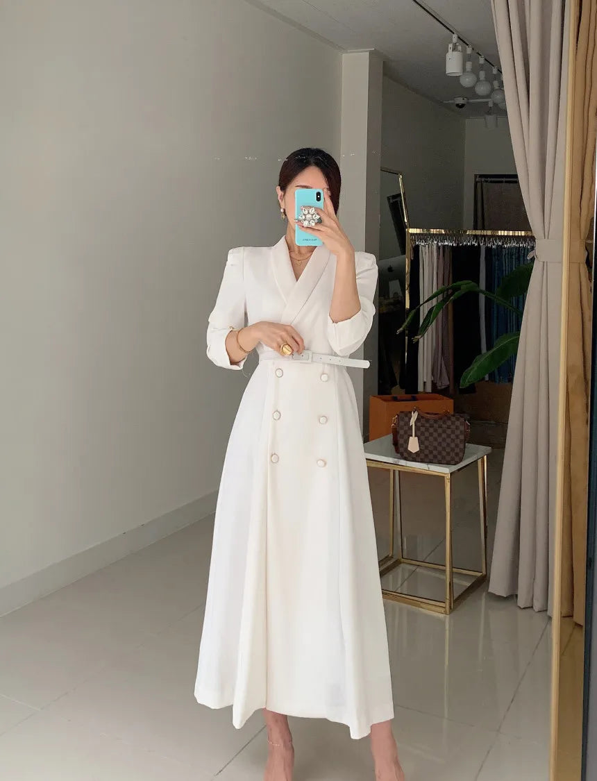 - Closure Type: Double-breasted closure, enhancing the dress’s professional look.