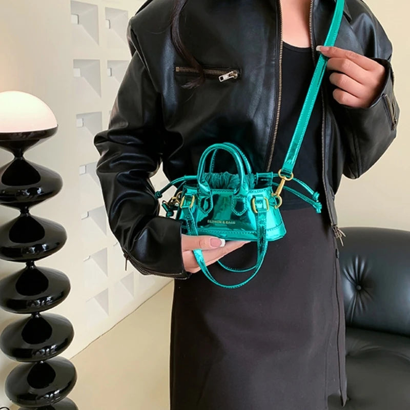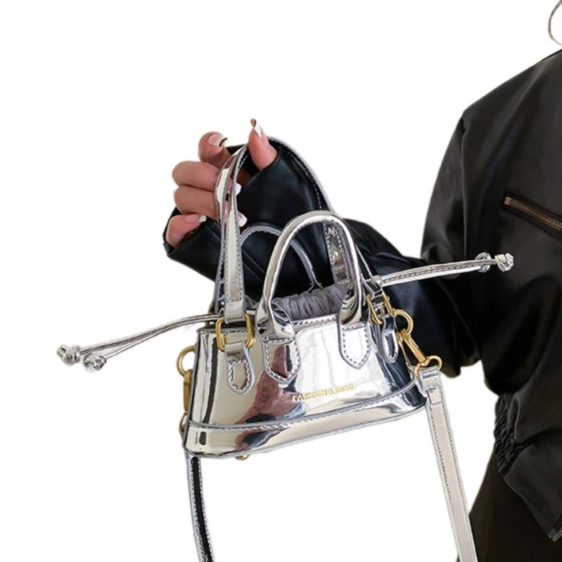 Prettyzys Lacquered Mini Shoulder Bag - Fashionable Drawstring Handheld Crossbody