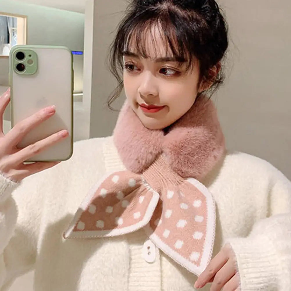 NoEnName_Null Women's Winter Splice Plush Scarf – Stylish & Cozy Casual Accessory